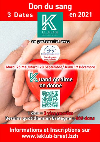 LE KLUB BREST dans le cadre des ses démarches RSE organise en partenariat avec l'EFS trois journées dédiées au Don du Sang réservée aux membres.